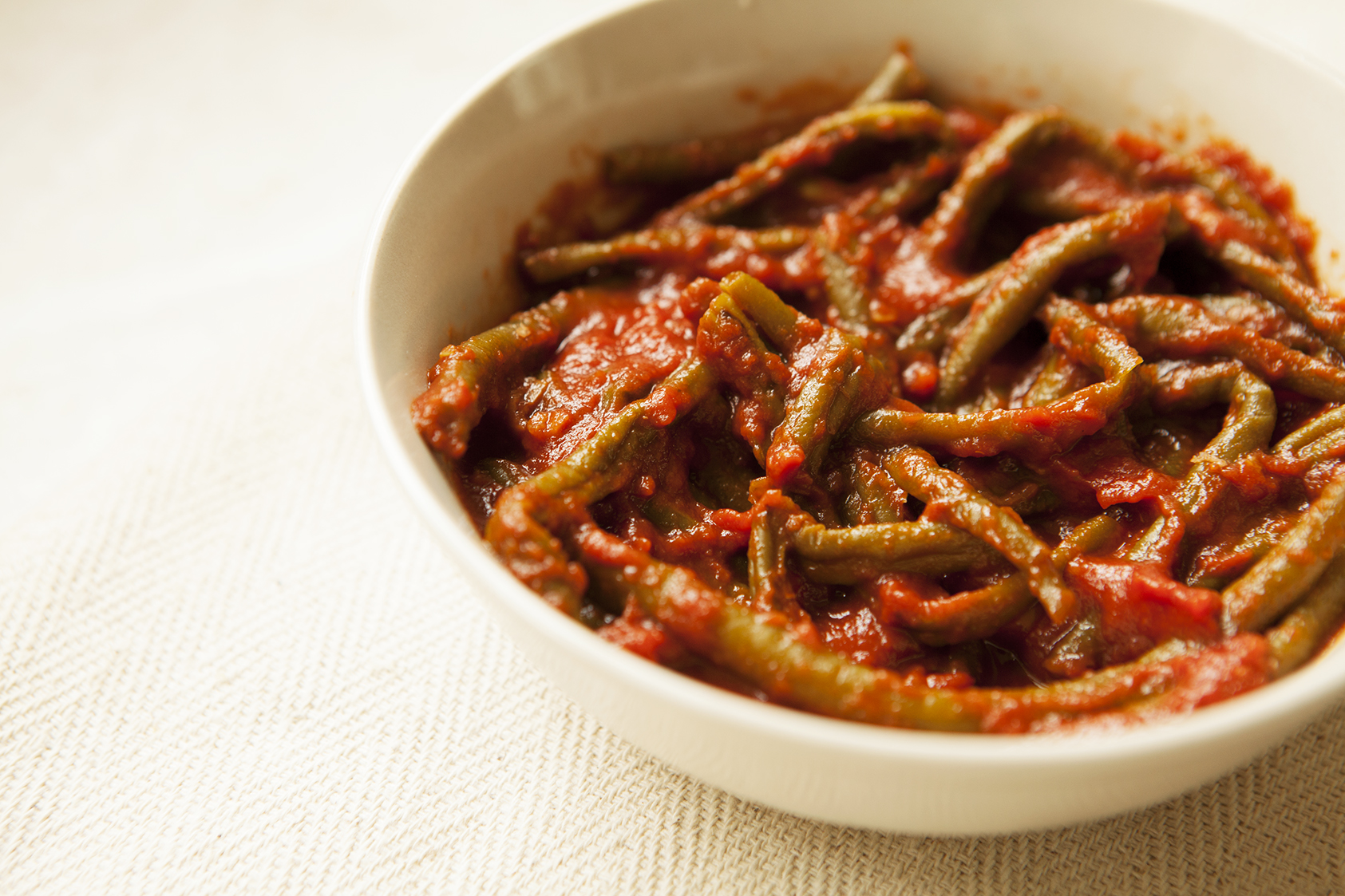 I could eat these all day long and have been eating green beans this way since I can remember. My auntie started this trend off within our family by bringing her Turkish cookery skills back to England with her – she lived and ran a hotel in Fethiye for many years. We usually eat them as a side dish amongst her infamous (and enormous!) Turkish feasts that she cooks for special family occasions. Personally I think they shine in their silky deep red hue all on their own and could most definitely eat a whole plate of them to myself. In Italy they eat their beans this way too, but they use ripened tomatoes rather than puree. The joys of having a good climate!