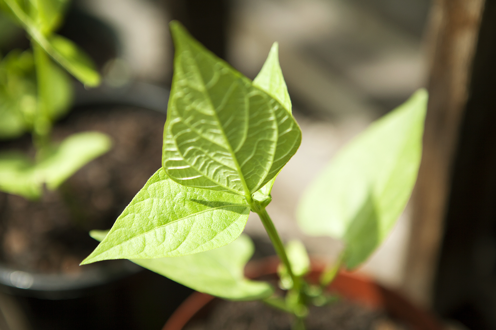 - Top and tail the beans and put them in a saucepan with the olive oil. Let them sizzle in the oil for 5 minutes stirring now and again so that they are covered in the oil. Add the crushed garlic and fry a little.