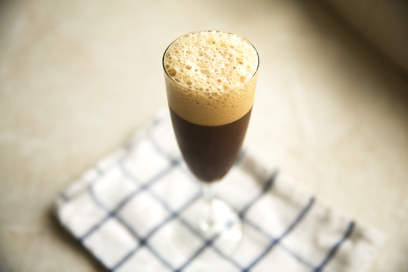 - Shake vigorously then pour into a glass. There should be a few inches of foam on top of the coffee.