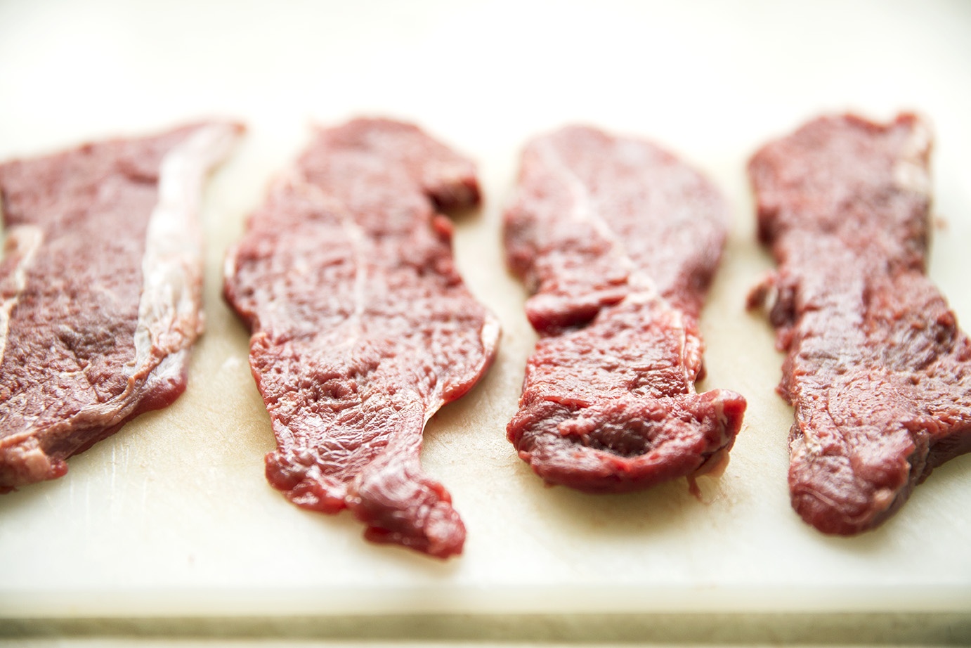 - Tenderise the meat slices by hitting them with a mallet.