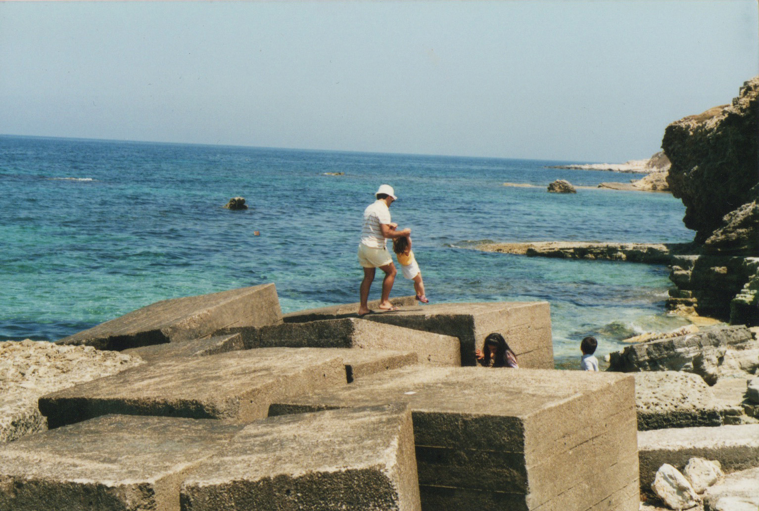 Dad swinging me into the waves at Otranto port