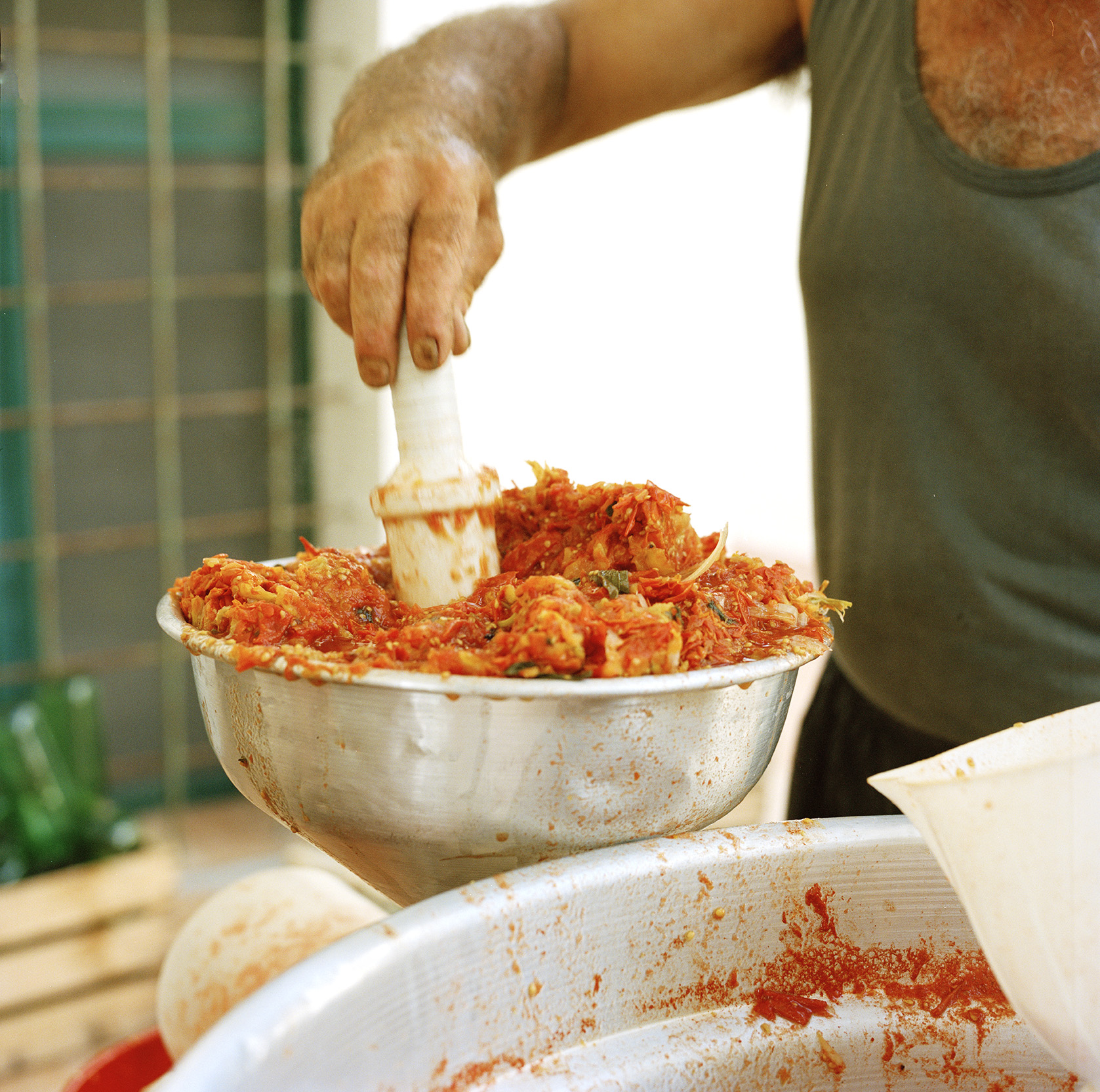 There’s something quite magical about watching a married couple make this rich red sauce together. And whilst Murray and I were photographing this act