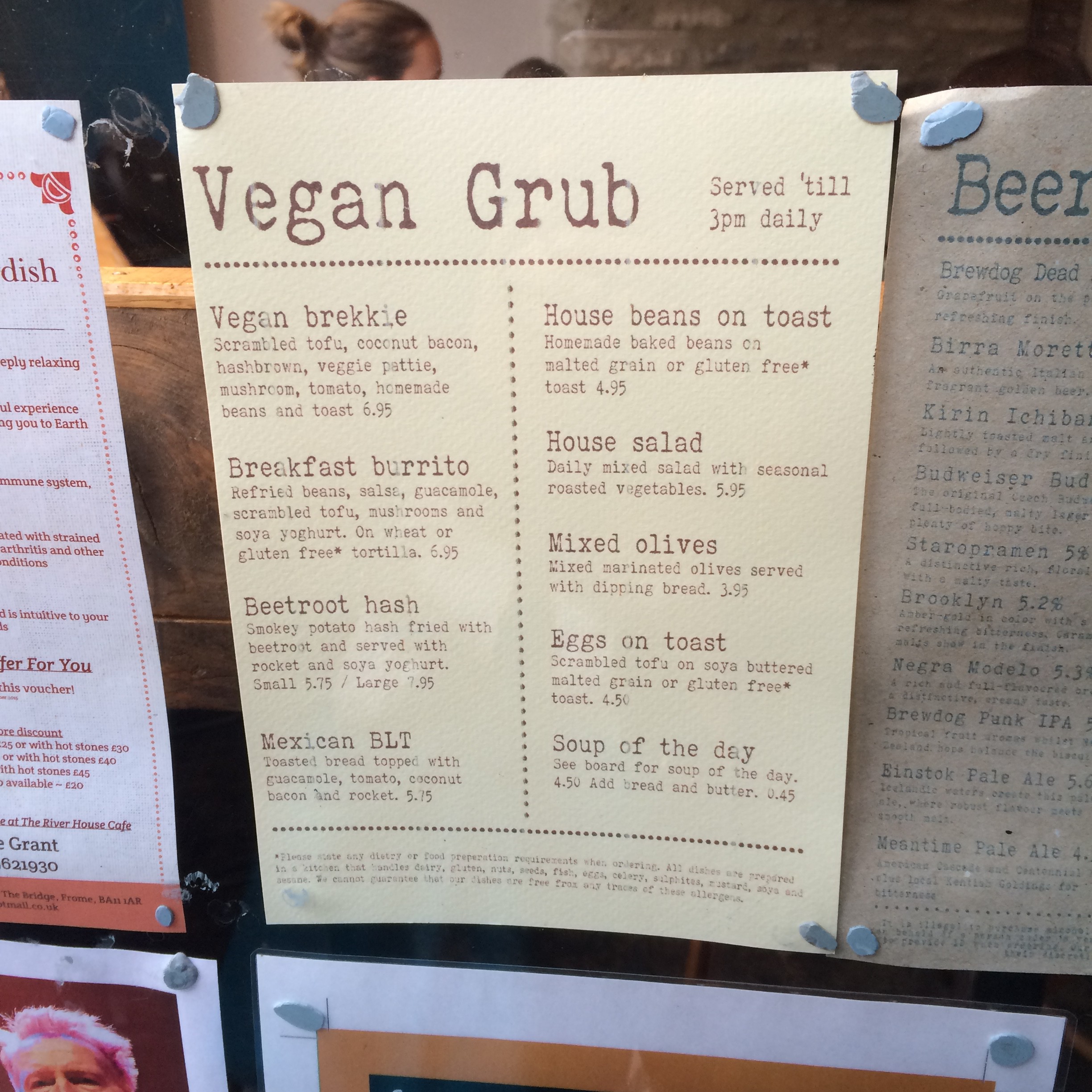 *Visited Frome and was very pleased to see this menu (below)