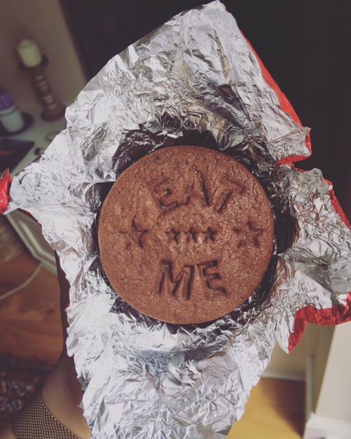 Snacks: Dark chocolate easter egg, Vegan wagon wheel.