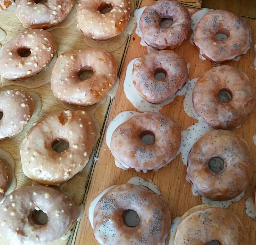 Snacks: Chocolate coconut donut and soy latte from Glazed Coffee, lots of green tea and water