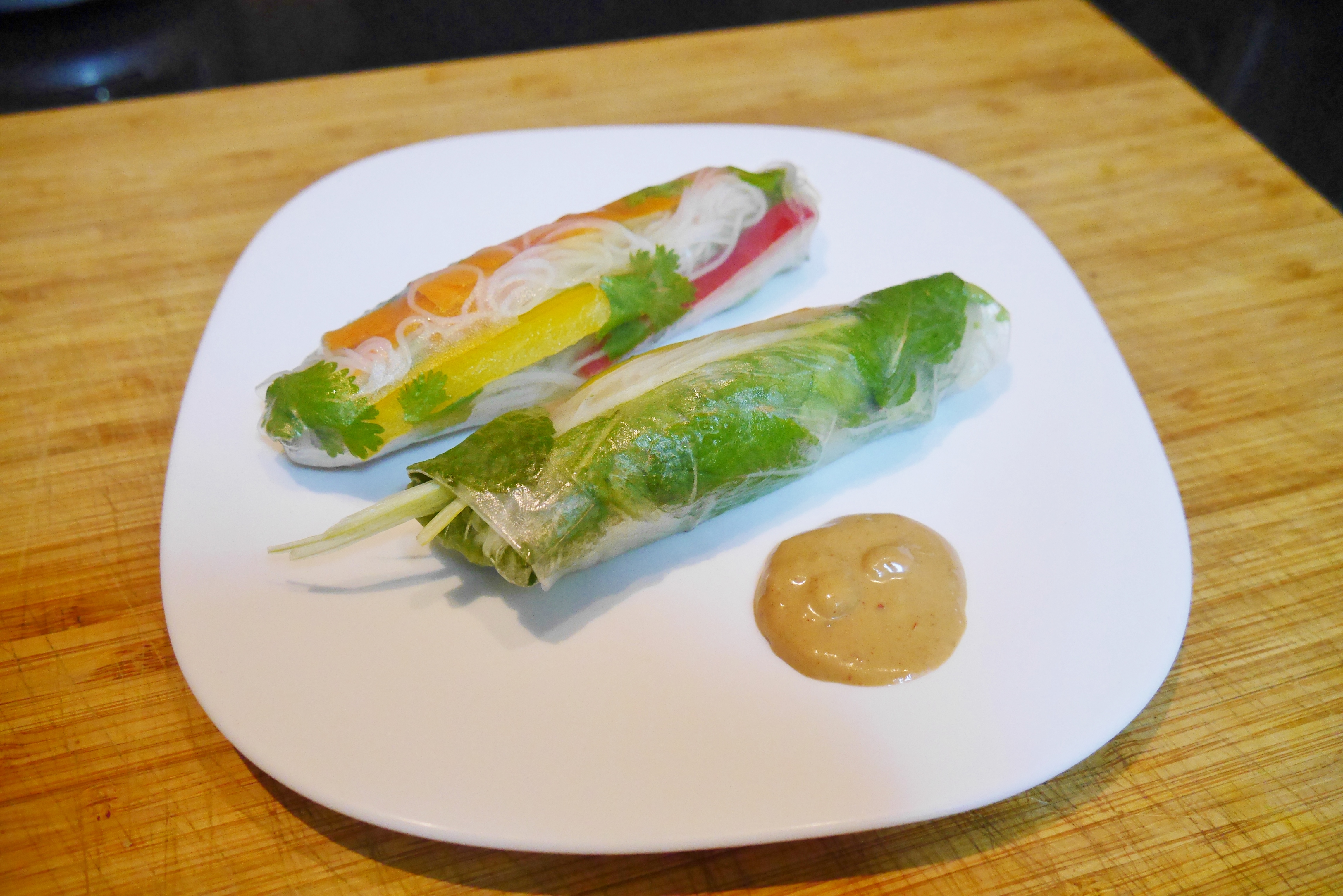 Dinner: My first attempt at Vietnamese fresh spring rolls, with peanut sauce