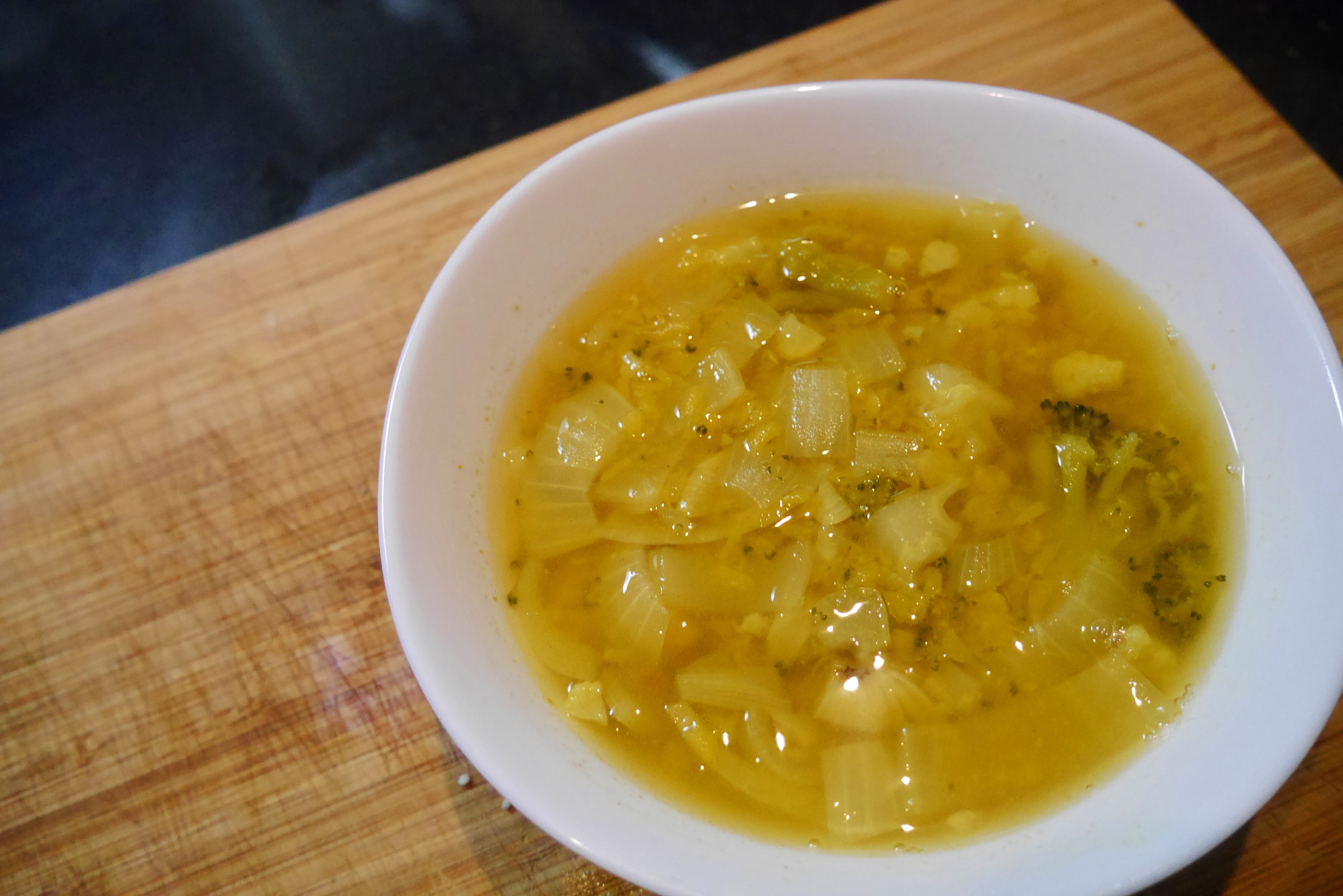 Dinner: Lentil soup with onion, garlic, spinach and leek
