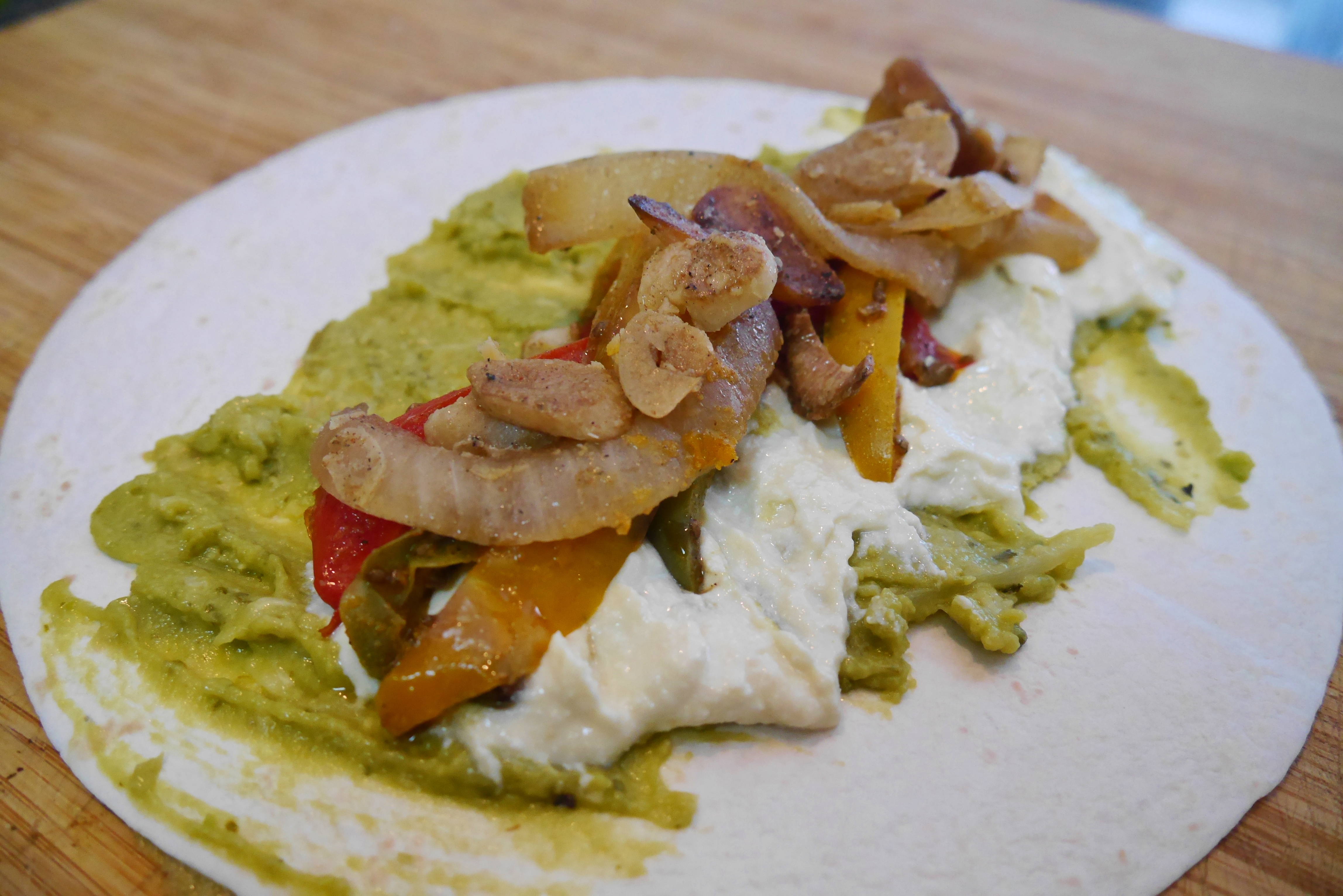 Lunch: Fajitas with pan fried tofu and vegetables (I also made mayonnaise!)